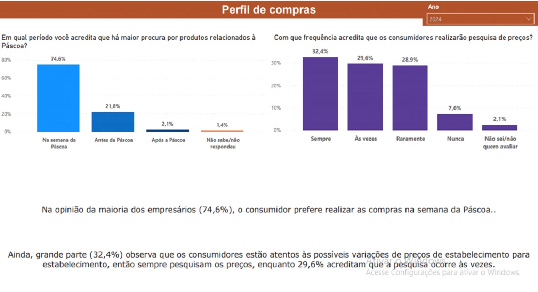 O período de compra dos consumidores apontado pelo empresário ajuda a compreender a atenção dos clientes aos preços, pois a maioria dos consumidores deixam para ir às compras na semana da pascoa, o que pode indicar que aproveitam o máximo período que antecede para pesquisar preços. E ainda tem uma parcela que vai esperar a data comemorativa passar para aproveitar os preços melhores. Destaca Gilson Machado.