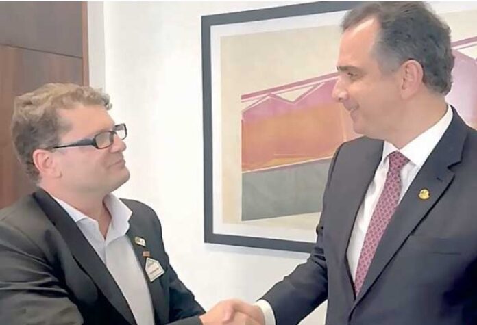 O presidente do Sindicato dos Proprietários de Jornais, Revistas e Veículos de Comunicação Digital de MG (Sindijori/MG), Rodrigo Silva Fernandes, foi recebido nesta terça-feira (16) pelo presidente do Senado e do Congresso Nacional, Rodrigo Pacheco.