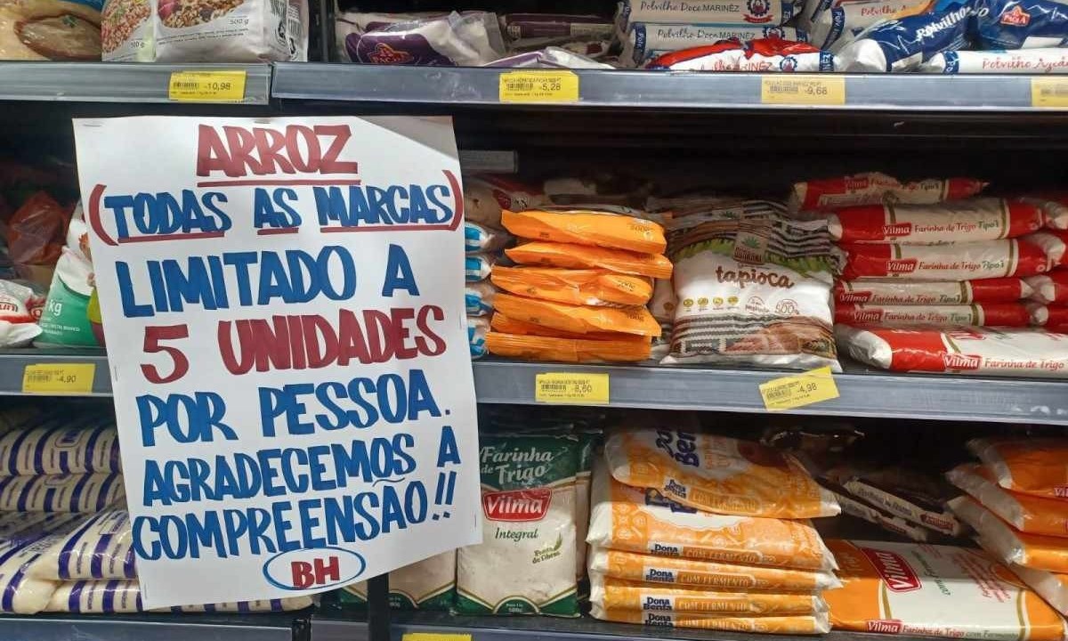 Um dia após a fala do presidente Luiz Inácio Lula da Silva (PT) – que afirmou que o país pode precisar importar arroz para equilibrar a produção e conter o aumento dos preços devido à quebra de produção gaúcha – os Supermercados BH e o Mart Minas amanheceram, na quarta-feira (8/5), com placas que limitavam a compra de arroz por clientes, apenas cinco pacotes de cinco quilos por pessoa.