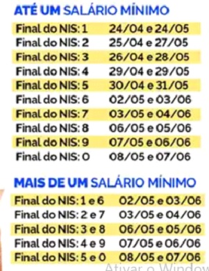 O calendário de pagamentos leva em conta o número final do cartão de benefício, sem considerar o último dígito verificador, que aparece depois do traço, também chamado de Número de Identificação Social (NIS).