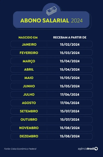 Neste ano, cerca de R$ 27 bilhões poderão ser sacados. Segundo o Conselho Deliberativo do Fundo de Amparo ao Trabalhador (Codefat), o abono salarial de 2024 será pago a 24,87 milhões de trabalhadores em todo o país. Desse total, 21,98 milhões trabalham na iniciativa privada e receberão o abono do PIS e 2,89 milhões de servidores públicos, empregados de estatais e militares têm direito ao Pasep.
