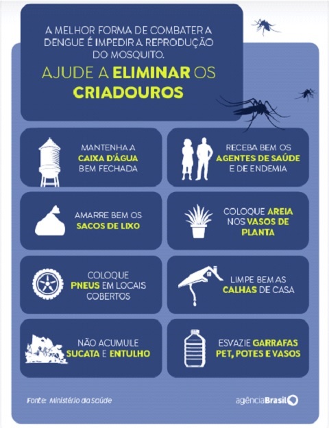 “Embora exista a vacina contra a dengue, o controle do vetor Aedes aegypti é o principal método para a prevenção e controle para a dengue e outras arboviroses urbanas (como chikungunya e zika), seja pelo manejo integrado de vetores ou pela prevenção pessoal dentro dos domicílios”, alerta o Ministério da Saúde.