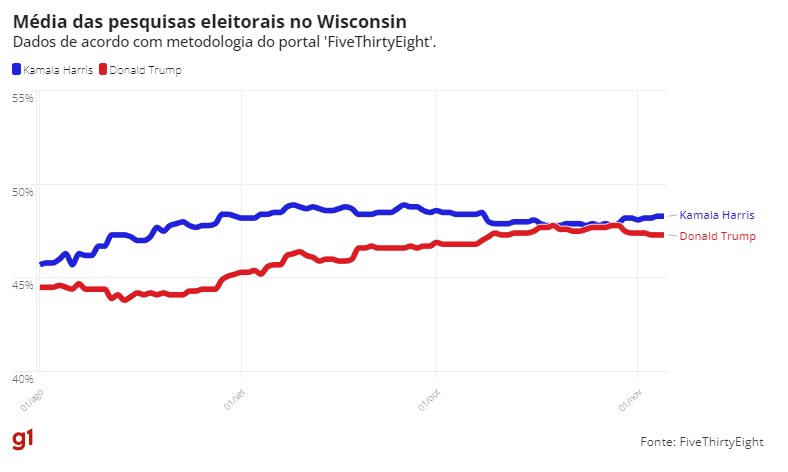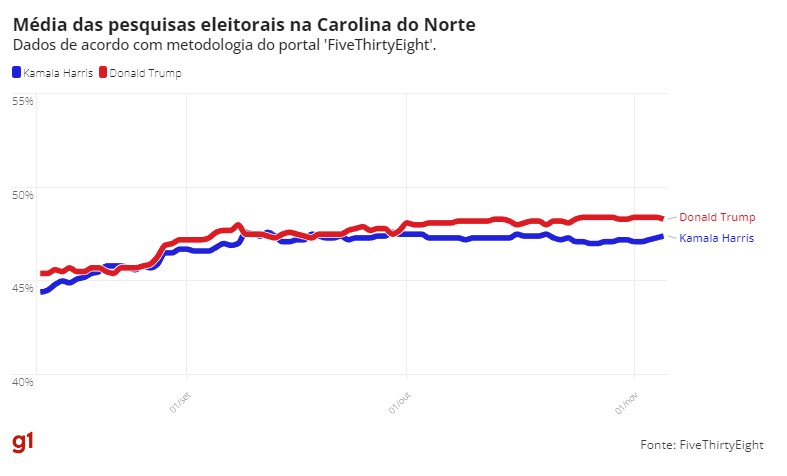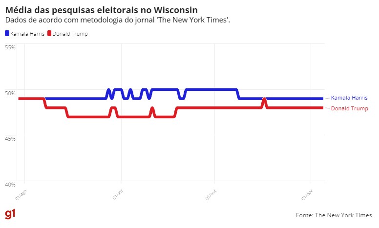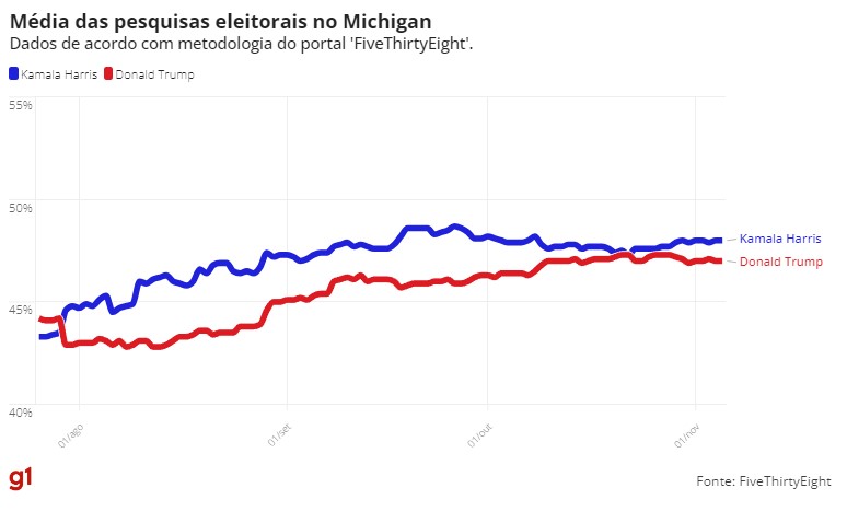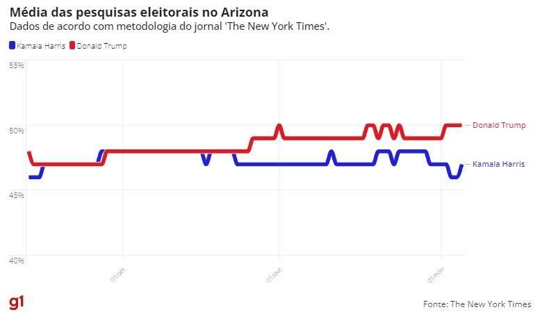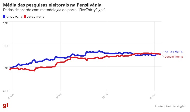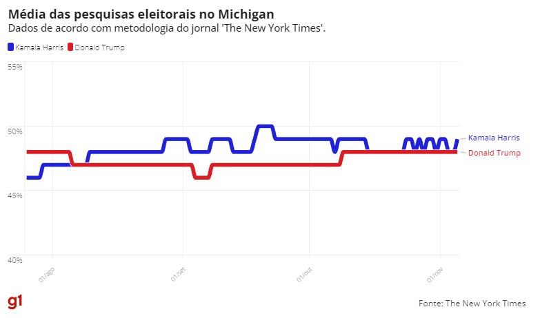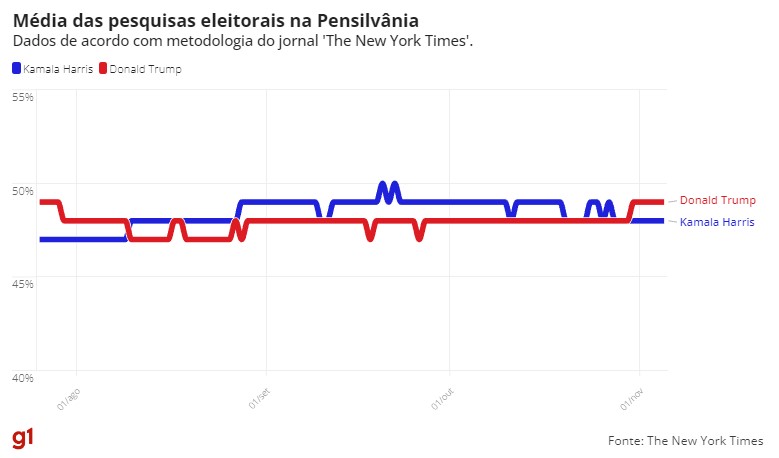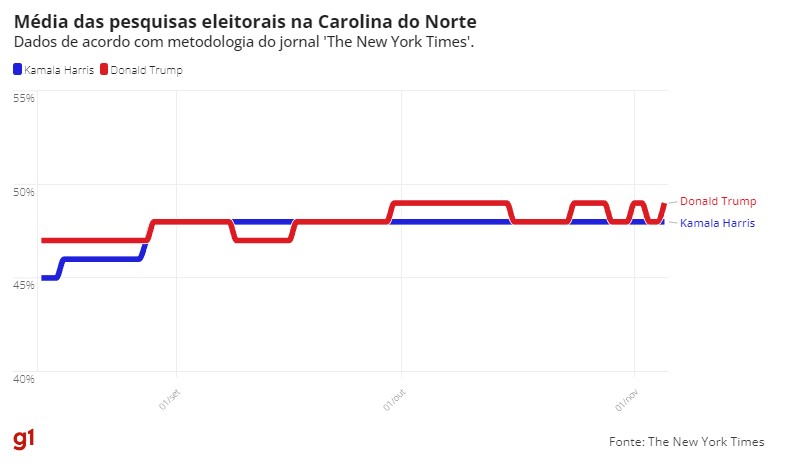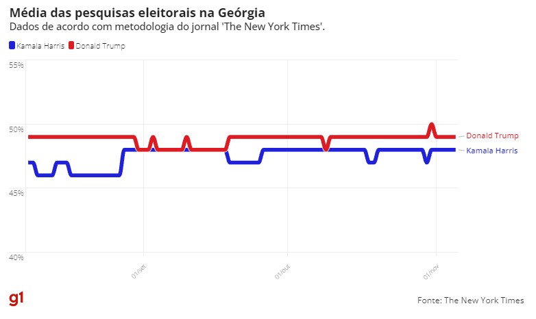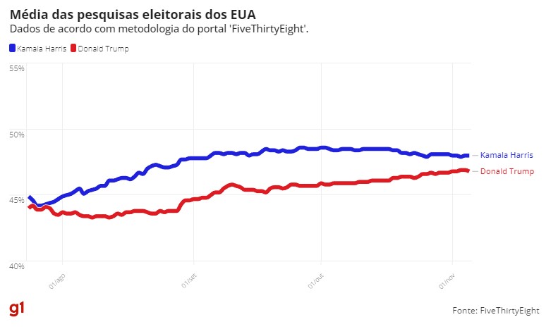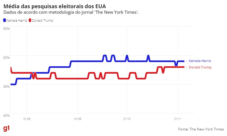 Dados reunidos pelo jornal ‘The New York Times’ e pelo projeto ‘FiveThirtyEight’ indicam disputa acirrada. Eleições são nesta terça-feira (5).