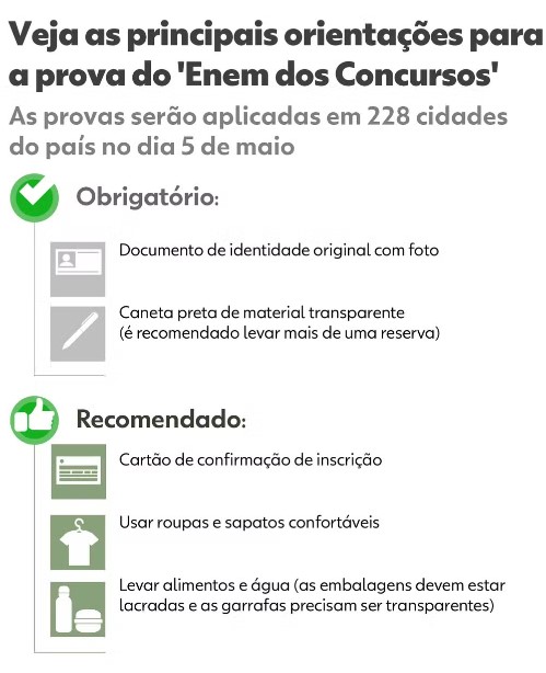 👕 De acordo com o ministério, é recomendado usar roupas e sapatos confortáveis no dia da prova, pois serão dois turnos de aplicação e a pessoa ficará sentada por um longo período de tempo.