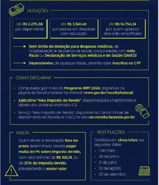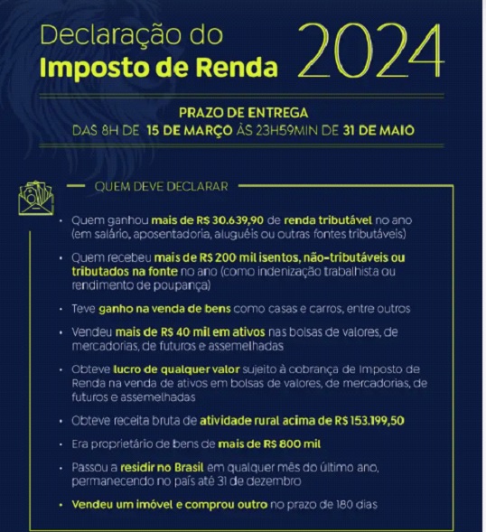 DA REDAÇÃO – Os contribuintes iniciaram, às 8h desta sexta-feira (15), o acerto anual de contas com o Leão, com a entrega da Declaração do Imposto de Renda Pessoa Física 2024 (ano-base 2023). Neste ano, a Receita Federal espera receber 43 milhões de declarações, contra 41.151.515 entregues no ano passado.