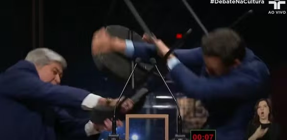 José Luiz Datena (PSDB) agrediu Pablo Marçal (PRTB) com uma cadeirada durante um debate com os candidatos à Prefeitura de São Paulo, neste domingo (15). O encontro, organizado pela TV Cultura, foi temporariamente interrompido após o incidente.