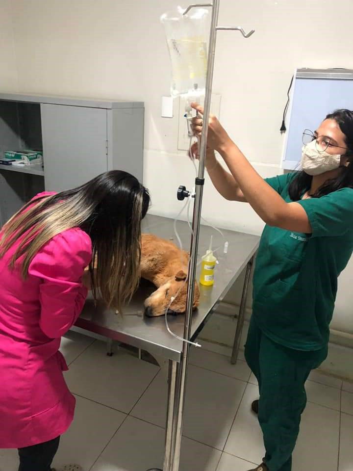 A médica veterinária Elen Gomes destacou que o cão estava em estado grave de desidratação, “a escala mais alta que consideramos”. “Deu entrada num estado de choque por desidratação, desacordado. Foi feita a reanimação, os primeiros exames clínicos, aferida glicose, coletados exames, anotados parâmetros vitais e monitorado durante toda a noite”.