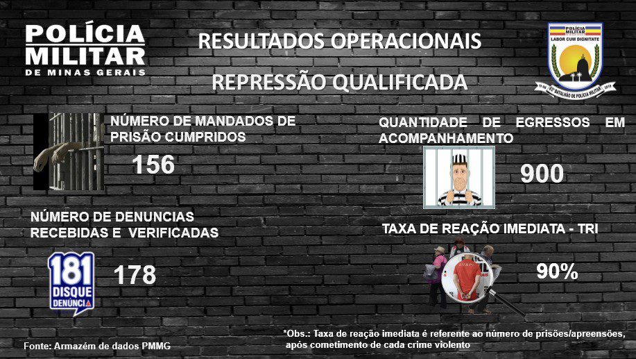 A taxa de reação imediata da Unidade chegou a casa de expressivos 90%, resultado esse que demonstra a eficiência da Unidade na resposta aos crimes violentos. 2615 autores foram presos e 243 menores foram apreendidos.