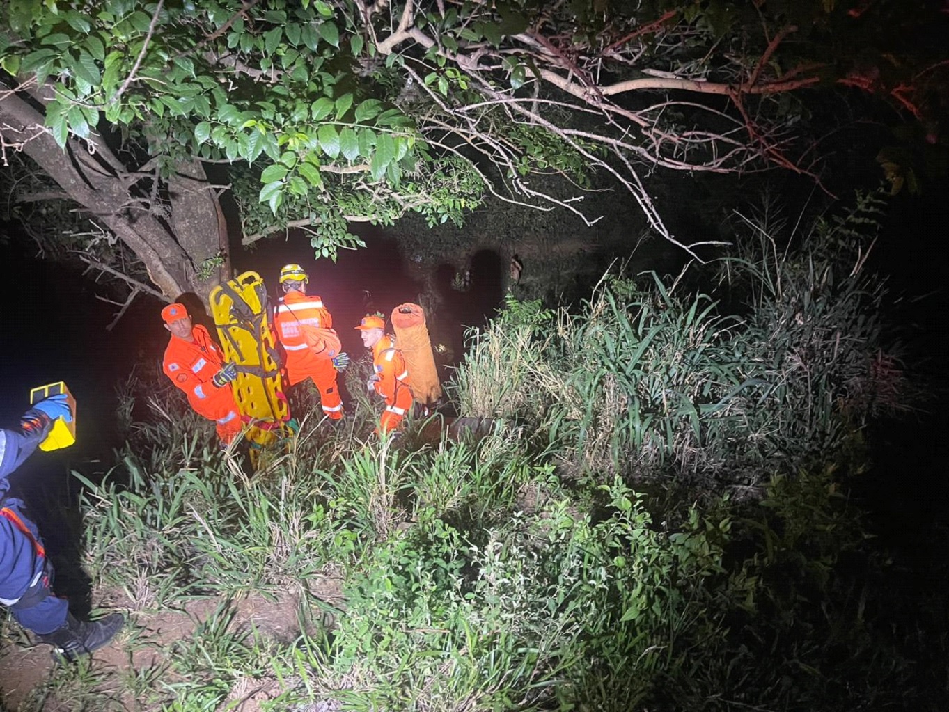 A vítima foi colocada em uma prancha e com uso de colar cervical. Os bombeiros utilizaram uma corda e a vítima foi içada até a pista, onde foi entregue para equipe do Serviço de Atendimento Móvel de Urgência (Samu), sendo encaminhada para o hospital Nossa Senhora Auxiliadora, em Caratinga.