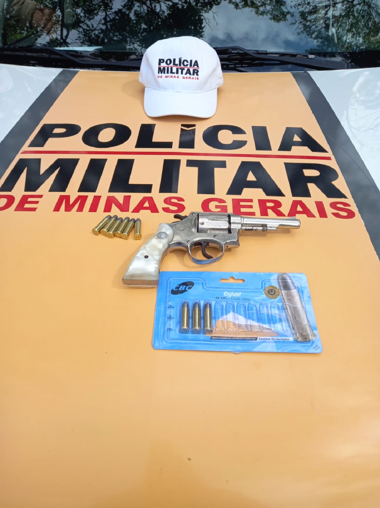 Durante operação de fiscalização de trânsito, a guarnição realizou a abordagem. Durante fiscalização foi encontrado no interior de uma mochila, um revólver .38 com municiado com seis munições intactas, sendo encontrado também na mochila três munições .38 intactas. Questionado sobre os materiais.