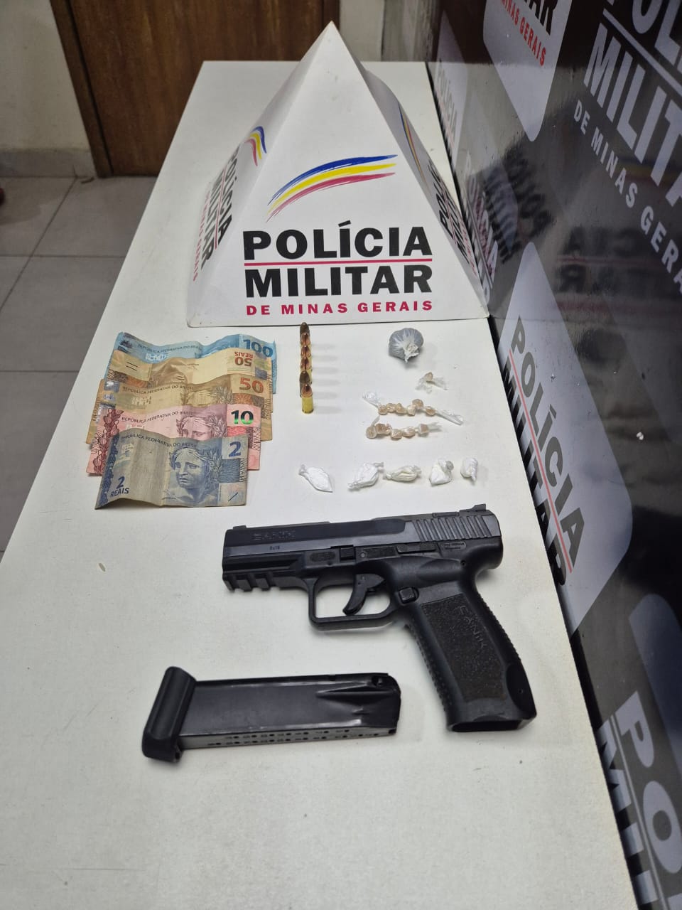 A ação foi desencadeada após a equipe receber informações sobre atividades ilícitas na região. De posse dessas informações, a PM conseguiu prender os envolvidos e apreender os seguintes materiais, uma pistola calibre 9mm, seis munições 9mm, 14 pedras de crack, cinco papelotes de cocaína, uma bucha de maconha e certa quantia em dinheiro.