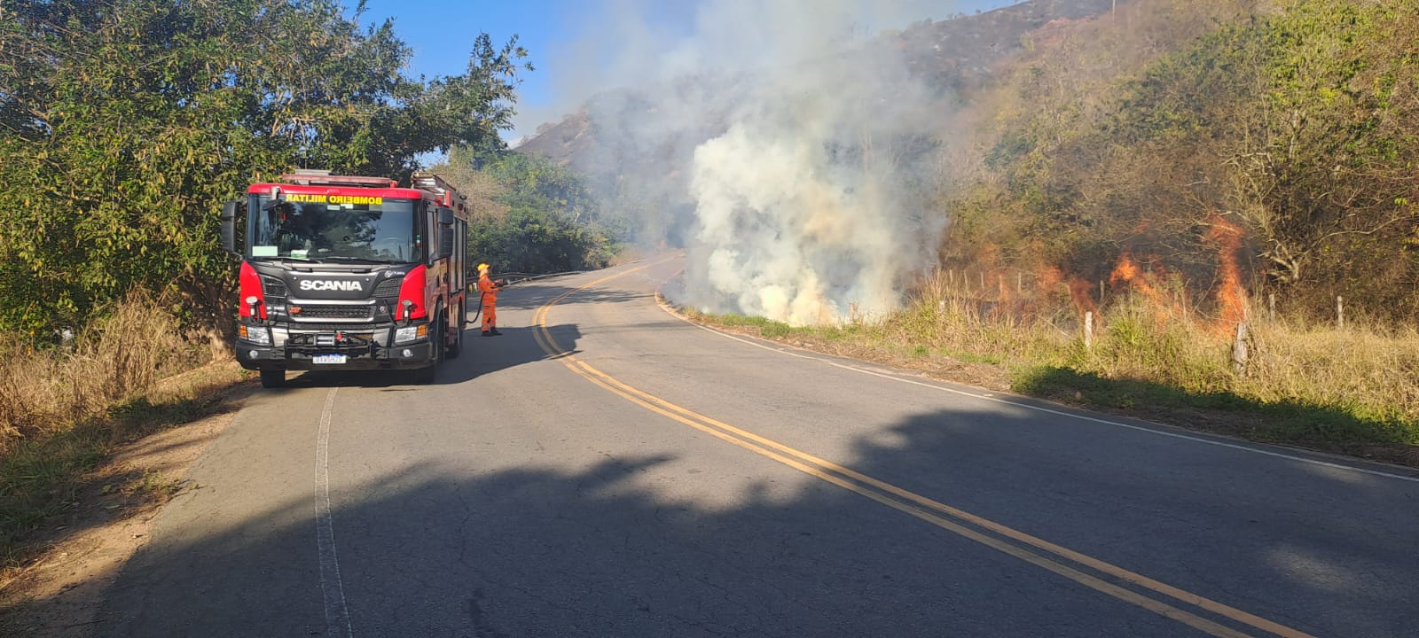 Os bombeiros militares foram acionados para atendimento de um incêndio que se localizava em área de amortecimento do PERD (Parque Estadual do Rio Doce).