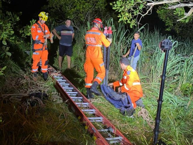 Uma equipe do 11º Batalhão do Corpo de Bombeiros Militar em Ipatinga, atuou na noite de quarta-feira (17) para salvar um homem de 64 anos que havia caído em um fosso, tipo cisterna, em uma área rural à margem da BR-381 em Santana do Paraíso. A vítima foi resgatada consciente, com fratura em um dos pés, depois de horas de trabalho da equipe, pois o local era de difícil acesso.