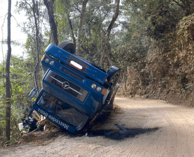 Segundo informações, o veículo seguia sentido Ipanema/Caratinga, quando o condutor perdeu o controle numa curva e o caminhão veio a tombar.