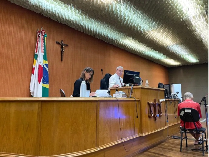 O conselho de sentença condenou o acusado por quatro crimes, homicídio triplamente qualificado e ainda por feminicídio, furto (porque ele levou o celular da vítima), fraude processual e ocultação de cadáver.