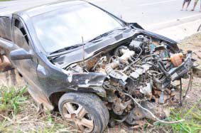 SANTA BÁRBARA DO LESTE – Pedaços de carro espalhados por vários metros da pista. Cenário de destruição. Difícil acreditar que alguém tivesse sobrevivido, mas nem feridos houve no acidente que aconteceu na tarde de ontem no km 551 da BR-116, em Santa Bárbara do Leste.