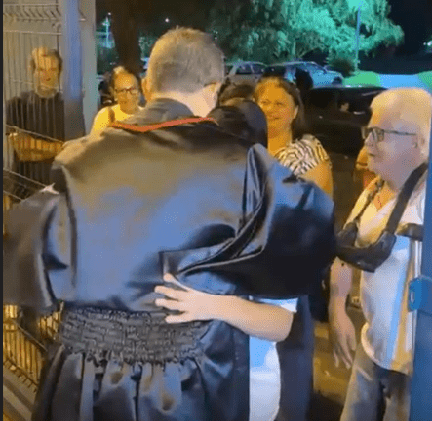 Familiares da vítima cumprimentaram o promotor Henry Wagner Vasconcelos de Castro após a sentença, em um gesto de reconhecimento pelo trabalho desenvolvido no caso.