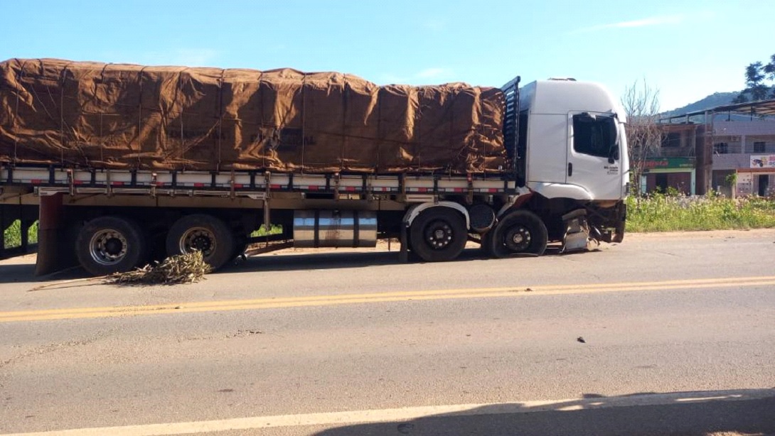 Houve a colisão frontal do caminhão com o lado esquerdo da frente do carro dirigido pelo pedreiro. No impacto, a roda do eixo dianteiro direito do veículo pesado se quebrou. O caminhoneiro não se machucou. Contudo, o motorista do carro ficou retido entre as ferragens.