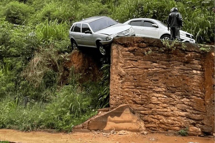 Por sorte ele não se feriu e o automóvel não despencou de uma altura considerável, onde ficou com a lateral suspensa.