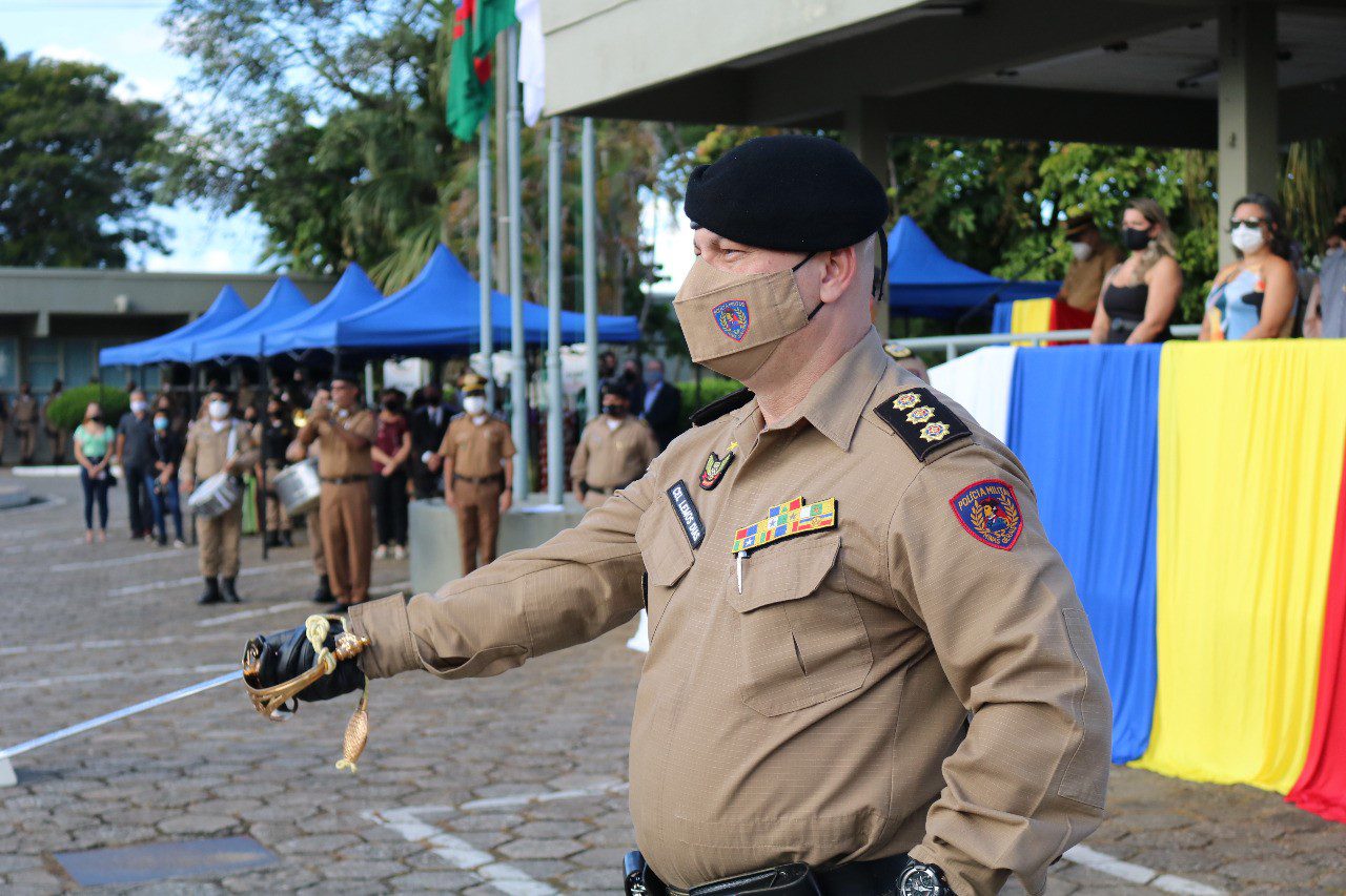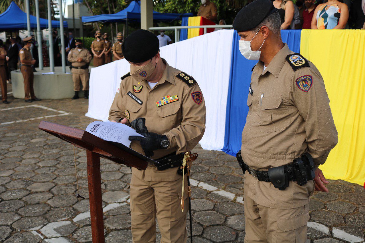 Ao final do evento, os três coronéis cumprimentaram a tropa presente, apertando a mão de cada um dos militares.