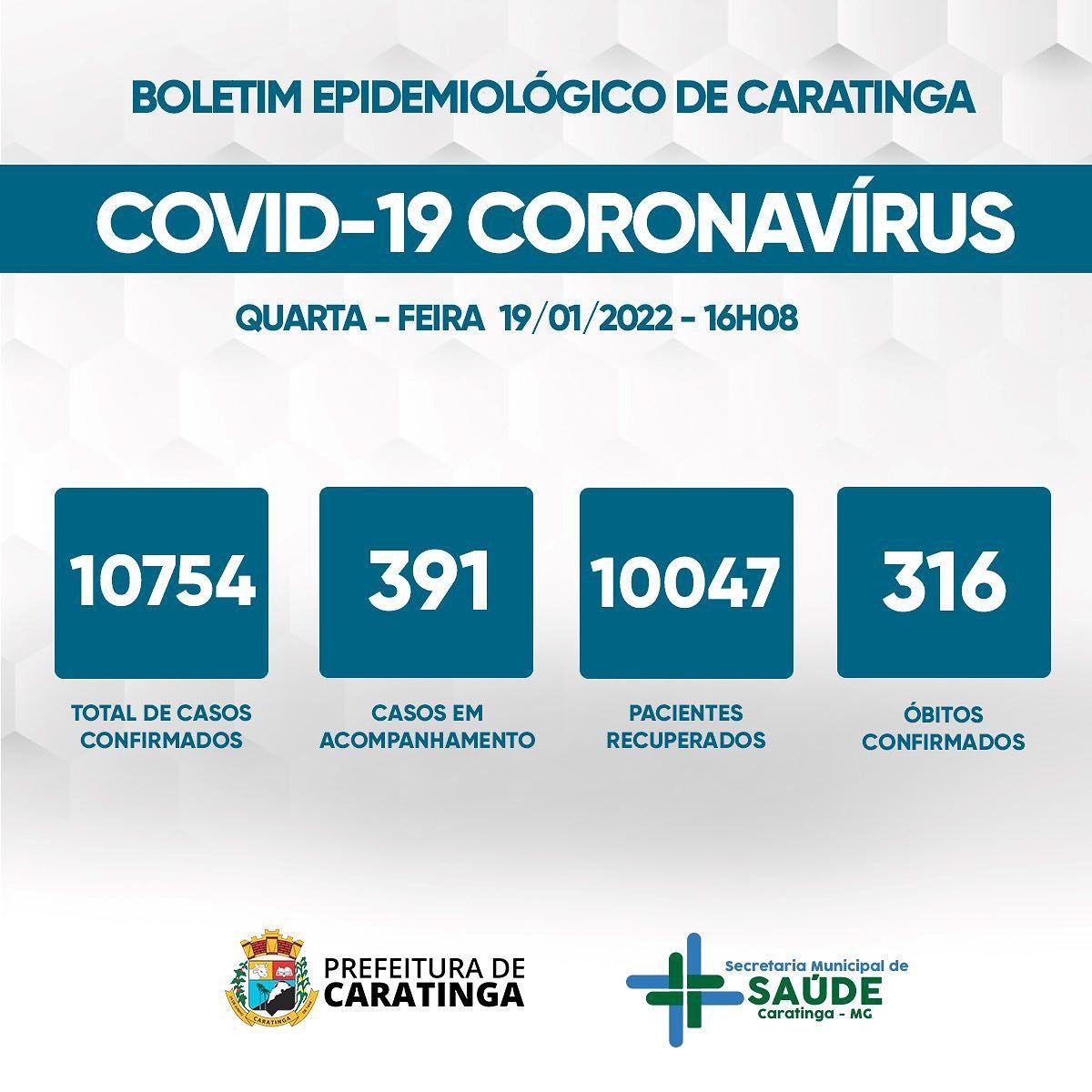 CARATINGA– De acordo com boletim epidemiológico publicado pela Secretaria Municipal de Saúde na tarde dessa quarta-feira (19), Caratinga soma 391 casos em acompanhamento de covid-19. No boletim de terça-feira (18) esse dado era de 335 casos, ou seja, um aumento de 56 casos em 24 horas.