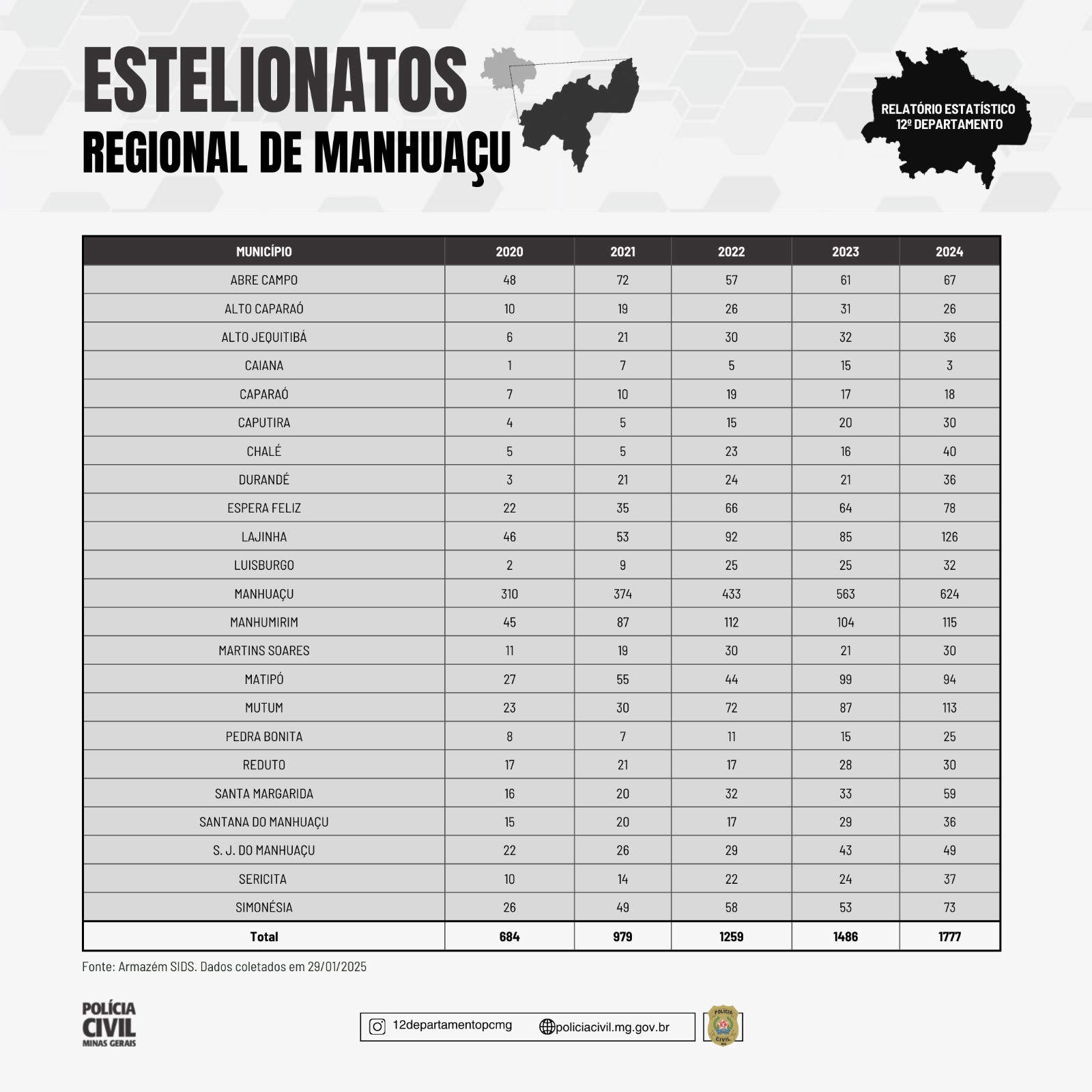 MANHUAÇU – Nos últimos anos, o número de estelionatos tem crescido de forma alarmante. A título de demonstração, a Delegacia Regional de Manhuaçu registrou 684 em 2020; no ano seguinte, este número saltou para 979; em 2022 foram 1259 registrou, enquanto este quantitativo saltou para 1486 em 2023; e 1777 no último ano. Ou seja, um amento de 160% nos registros de estelionato.