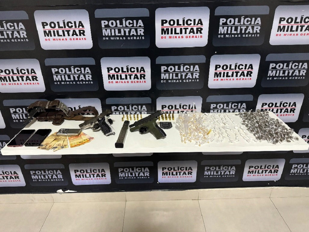 Com os suspeitos, os militares localizaram duas pistolas 9mm, sendo uma delas com seletor de rajada, munições, drogas e dinheiro. “Nós temos trabalhado diuturnamente para combater a criminalidade violenta. Nós estamos recebendo apoio da Rotam para que juntos, possamos fazer frente, principalmente aos crimes de homicídio, conforme foi desvendado. Nós continuamos trabalhando de forma incessante a fim de que esse tipo de crime não prospere em nosso batalhão e nossa região. Gostaríamos de pedir à população que, caso tenha mais informações a respeito do tráfico de drogas, a respeito dos crimes de homicídio, que possam estar nos auxiliando através do 181 e do 190”, reforçou o tenente Eledylson.