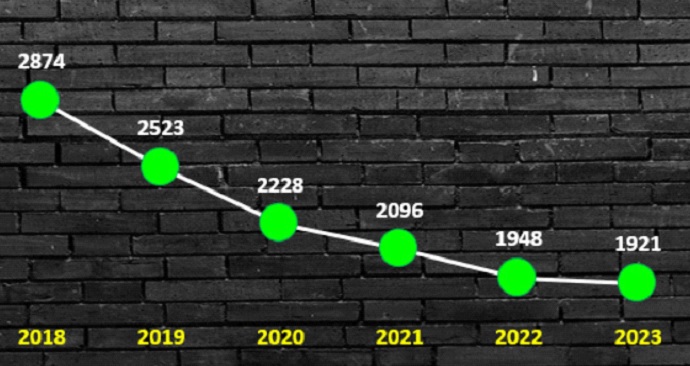 CARATINGA – Os números de criminalidade estão tendo redução histórica na área de atuação do 62º Batalhão de Polícia Militar, sediado em Caratinga. Dados fornecidos pela Unidade apontam em 2018, 2.874 furtos cometidos nesta região. Já em 2023, foram registrados 1.921 furtos. Uma redução de 33,2% neste tipo de delito ao longo deste período.