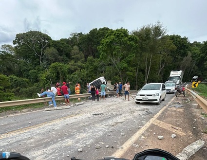 A carreta baú carregava cargas diversas que ficaram espalhadas pela margem da estrada. Vários populares se aglomeraram no local do acidente, mas o trânsito não chegou a ser totalmente interrompido.