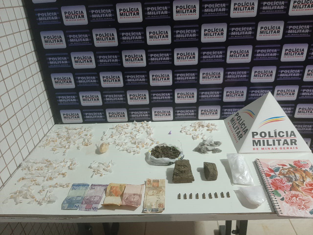 Na casa do menor de 16 anos a polícia apreendeu 312 pedras de crack, dois dois tabletes de maconha, uma sacola contendo porção de maconha, R$ 57,00, duas sacolas contendo material comumente utilizado para preparo de entorpecente para comércio, nove cartuchos intactos de munição calibre 25 (635mm) e um caderno contendo anotações que aparentam remeter à contabilidade inerente ao tráfico ilícito de drogas. Um jovem de 18 anos, irmão do menor de 16 foi conduzido pelo crime de tráfico ilícito de drogas.