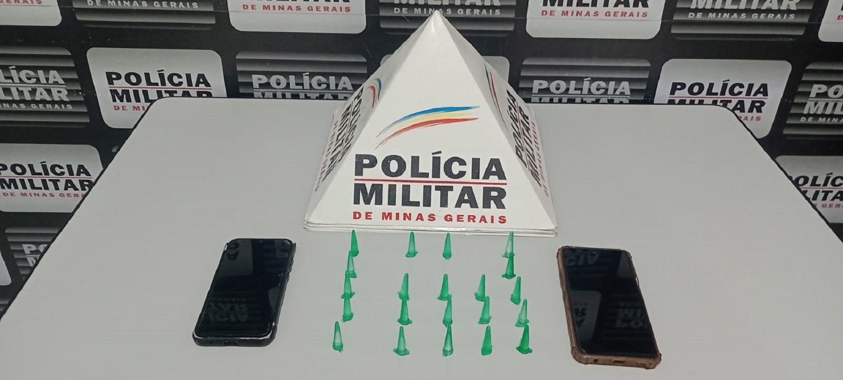 Ao perceberem a presença da viatura policial, ambos os ocupantes demonstraram nervosismo, ocultando os aparelhos celulares, e em seguida tentaram fugir. A guarnição conseguiu interceptá-los e proceder a abordagem, sendo encontrado um invólucro plástico ao lado da motocicleta. Após uma busca pessoal, nenhum item ilícito foi encontrado. No entanto, o material dispensado pelo passageiro consistia em 21 pinos de cocaína. Segundo a PM, ele assumiu a propriedade da droga e afirmou estar a caminho de uma cavalgada no córrego Limoeiro, zona rural do município.