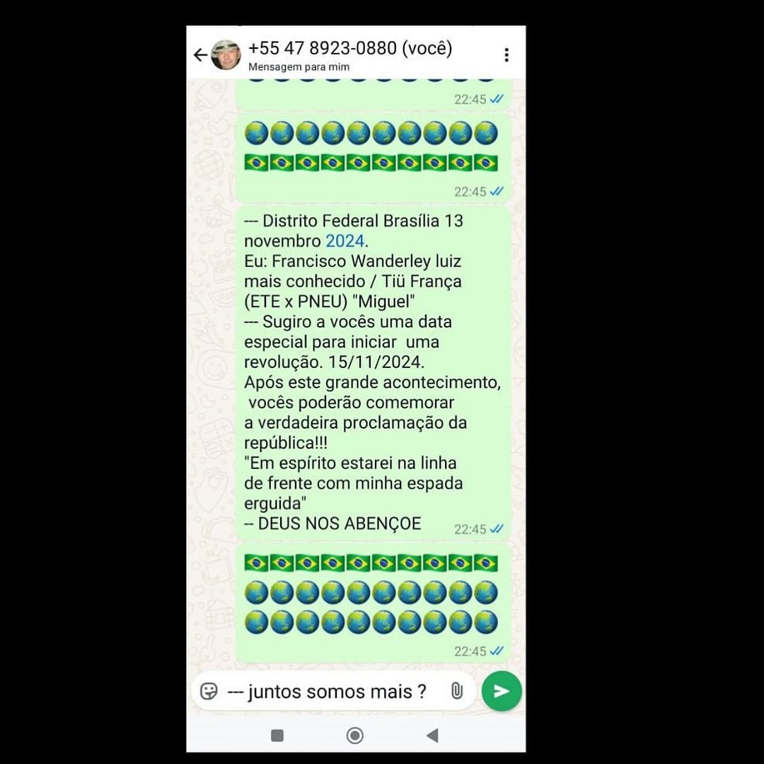 Nas redes sociais, o chaveiro Francisco Wanderley Luiz antecipou o ataque a bombas na sede do STF.