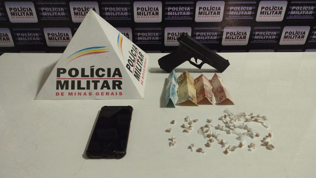 Foram apreendidos o simulacro, o qual pode ter sido utilizado para garantir a prática de tráfico ilícito de drogas no local, 57 pedras de crack e R$ 170,00.