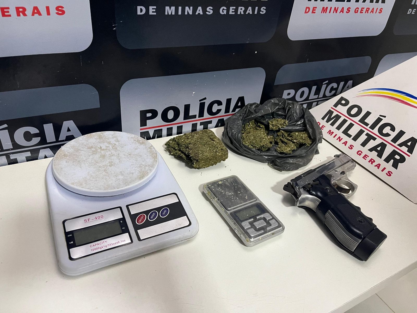 Uma guarnição da PM fazia patrulhamento com foco na prevenção de crimes de homicídio, quando os militares conseguiram localizar e apreender duas armas de fogo. No decorrer das buscas foram encontradas uma pistola 58 HC, um carregador, uma pistola calibre 380, com três munições do mesmo calibre, um tablete médio e uma porção de maconha, além de duas balanças de precisão.