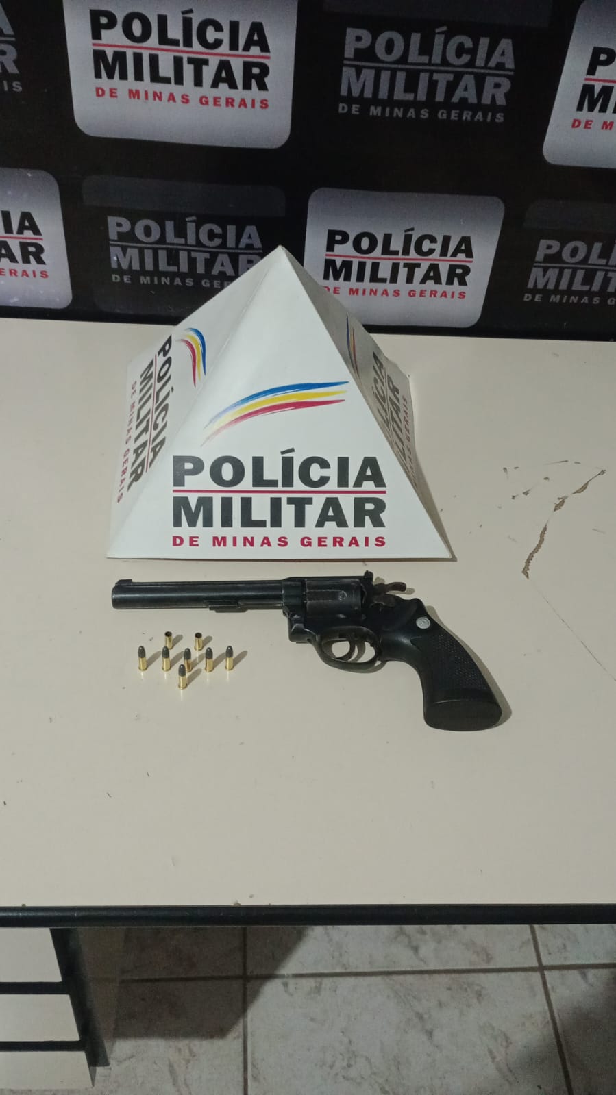 De posse das informações, a equipe realizou rastreamento e abordou um carro com as características repassadas. Na busca veicular, foi localizado sobre o banco traseiro um revólver calibre .22, desmuniciado, além de seis munições intactas e dois cartuchos deflagrados do mesmo calibre.