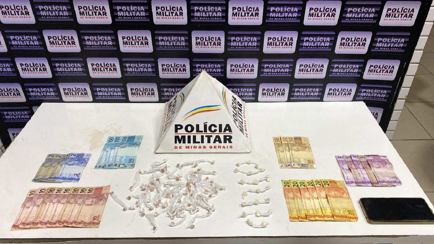 O autor foi abordado, sendo que durante varredura na vegetação por onde tentou fugir, foram encontradas 91 pedras de crack, 20 pedras de cocaína, R$ 683,00 e um telefone celular.