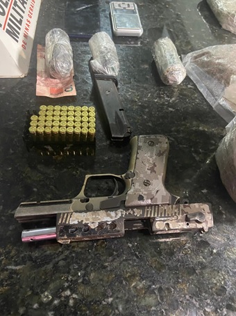 O adolescente admitiu estar na residência e disse ter fugido por medo de ser apreendido. A PM encontrou ainda uma bolsa com roupas, um celular do menor e uma bolsa de cor preta contendo mais drogas, além de sete impressões de cartelas para identificação das substâncias. Em continuidade às buscas, foi localizada uma pistola calibre 9mm com treze munições, escondida debaixo de um pé de limão no quintal.