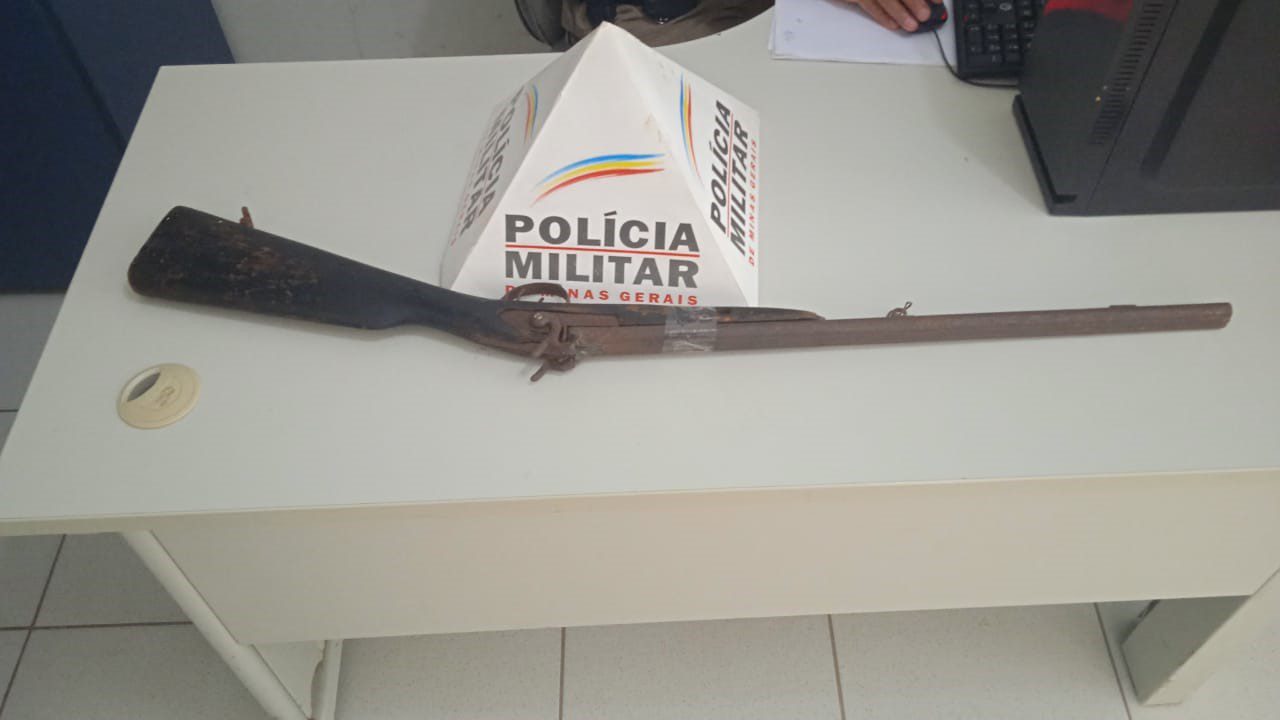 PINGO-D’ÁGUA – Uma espingarda foi recolhida pela Polícia Militar no início da tarde dessa quinta-feira (20) na rua Pernambuco, em Pingo-d’Água. Um indivíduo, 56 anos, foi detido pelos militares.