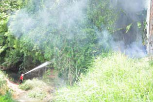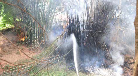 O incêndio começou por volta das 14h30 de ontem em um bambuzal, que fica na esquina da Praça da Estação; entre a antiga sede dos bombeiros e o início da Avenida Dário Grossi. As chamas se espalharam rapidamente e foram necessários dois caminhões-pipas para o combate ao fogo, sendo usados, aproximadamente, nove mil litros de água.