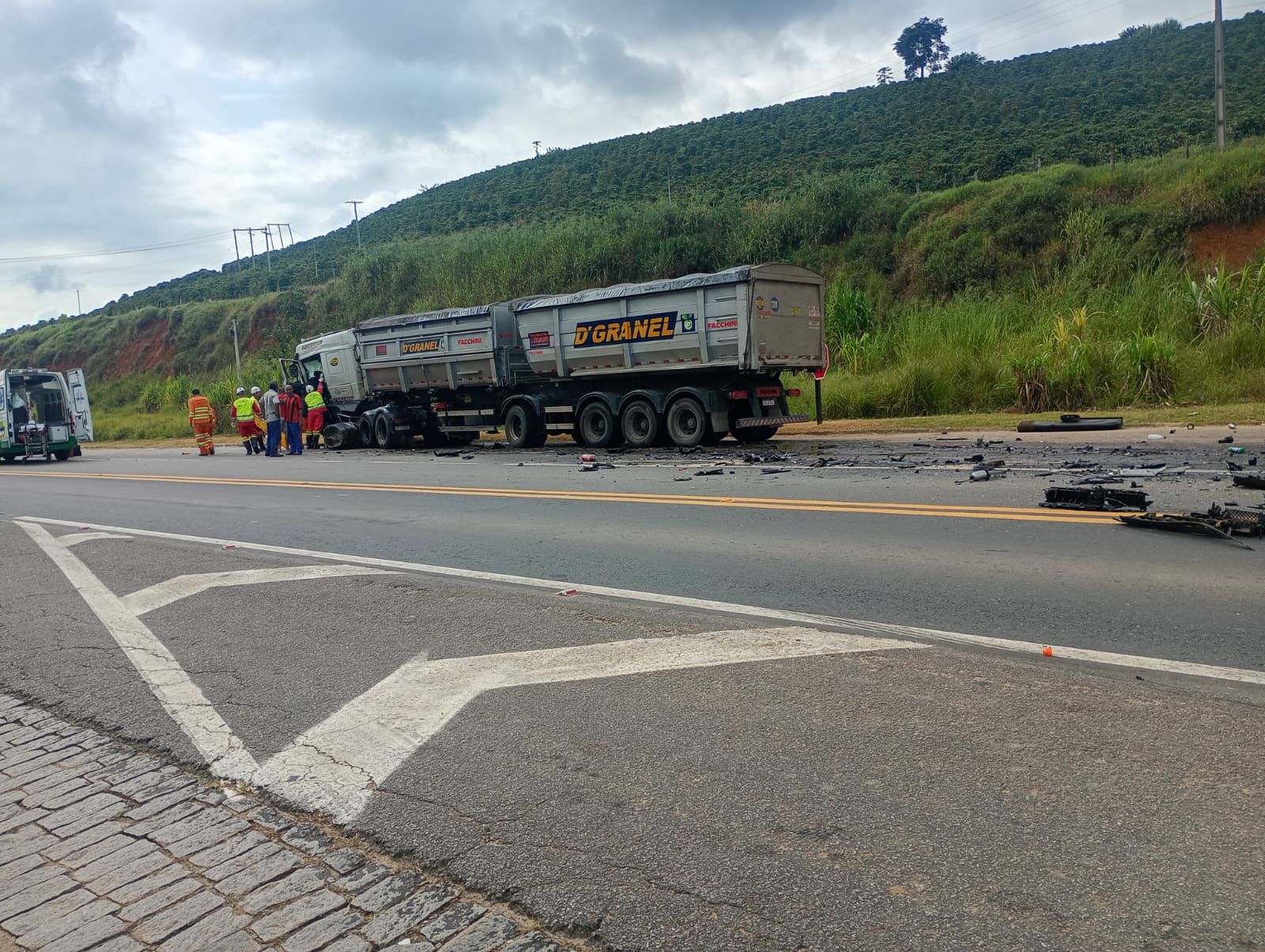 Equipes de socorro foram acionadas, assim como a polícia, que esteve no local para o registro da ocorrência e demais providências. A equipe responsável pela via também compareceu ao local e prestou apoio durante o atendimento.