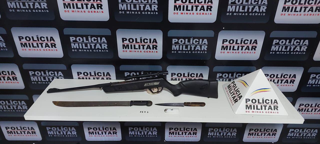 Após o ocorrido, o autor retornou para sua residência, onde pegou uma espingarda de pressão calibre 5,5mm e efetuou diversos disparos em direção à janela da garagem da vítima, sem causar ferimentos. Diante da situação, os militares realizaram a prisão do autor e apreenderam os materiais utilizados no crime, sendo um facão, uma faca, um isqueiro, uma espingarda de pressão e quatro chumbos de calibre 5,5mm.
