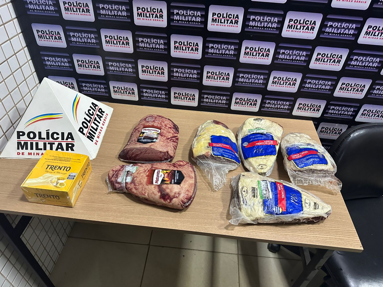 Desconfiado da situação, o funcionário decidiu esperar o cliente na saída do supermercado e o abordou, pedindo que mostrasse o conteúdo da mochila. Sem oferecer resistência, o homem atendeu ao pedido. Ao abrir a mochila, foram encontradas seis peças de picanha e uma caixa de chocolate.