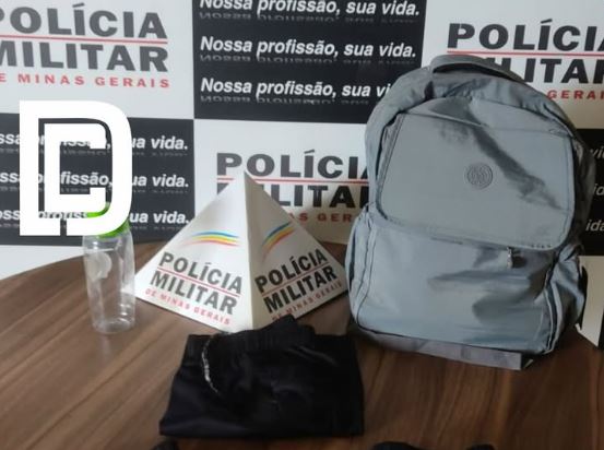 Com ele, foram encontrados os materiais furtados: uma mochila, roupas e uma garrafa de água. O indivíduo confessou ter furtado dois estabelecimentos comerciais no centro da cidade.
