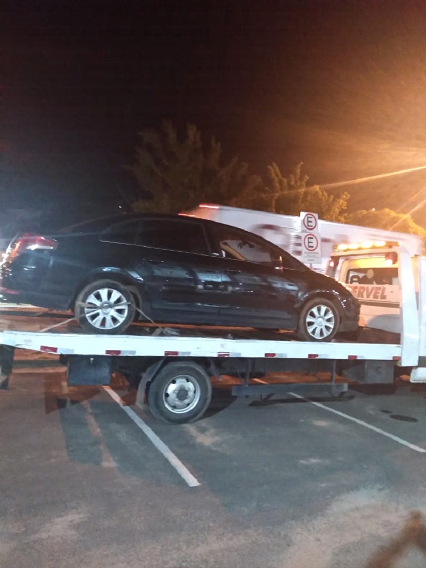 Após receber as informações, as equipes da Policia Militar iniciaram imediatamente o rastreamento em busca do veículo denunciado. Em Entre Folhas, a Polícia Militar identificou o autor e localizou o veículo em sua residência. Durante a busca, foram encontradas as placas de isopor furtadas dentro do carro.