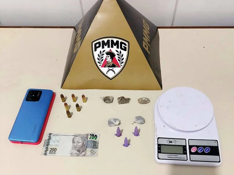 Durante buscas no local e nas imediações, foram apreendidos três pinos de cocaína, cinco buchas de maconha, seis munições intactas calibre 9mm, R$ 200 em dinheiro, uma balança de precisão e um aparelho celular.