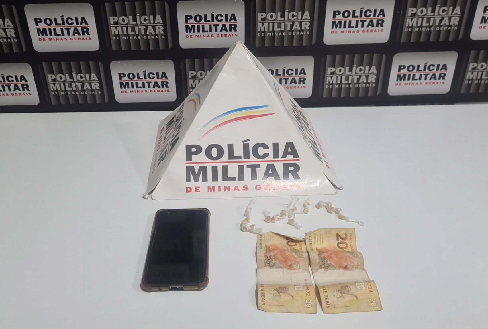 Foi realizada uma abordagem e encontrada a quantia de R$40,00, além de seu aparelho celular. Durante a busca no beco da residência, foi localizada a sacola plástica contendo vinte pedras de crack.
