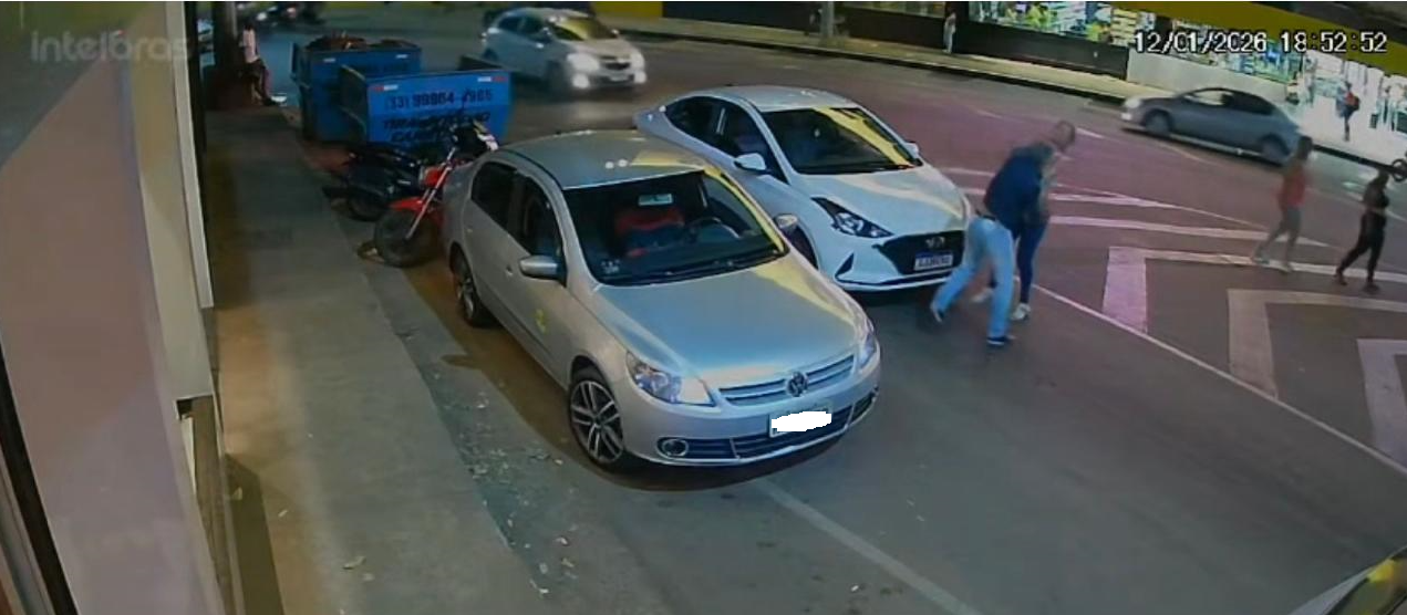 CARATINGA – Câmeras de segurança flagraram o momento em que um motorista de aplicativo agride uma colega de profissão com um soco no rosto, na noite do dia 12 de janeiro, em frente ao supermercado Coelho Diniz, nas proximidades da Praça da Estação. A vítima, Cristiane Aparecida Soares Salgado, caiu ao chão após ser atingida. O caso foi registrado pela Polícia Militar e segue em apuração.