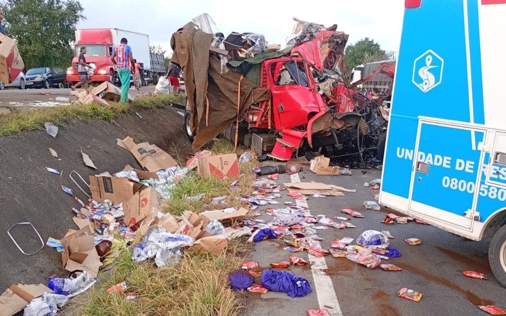 Os veículos transportavam cargas de frutas e café. Com o impacto frontal, um dos caminhões ficou completamente destruído. Parte da carga espalhou-se pela pista e foi saqueada por populares.