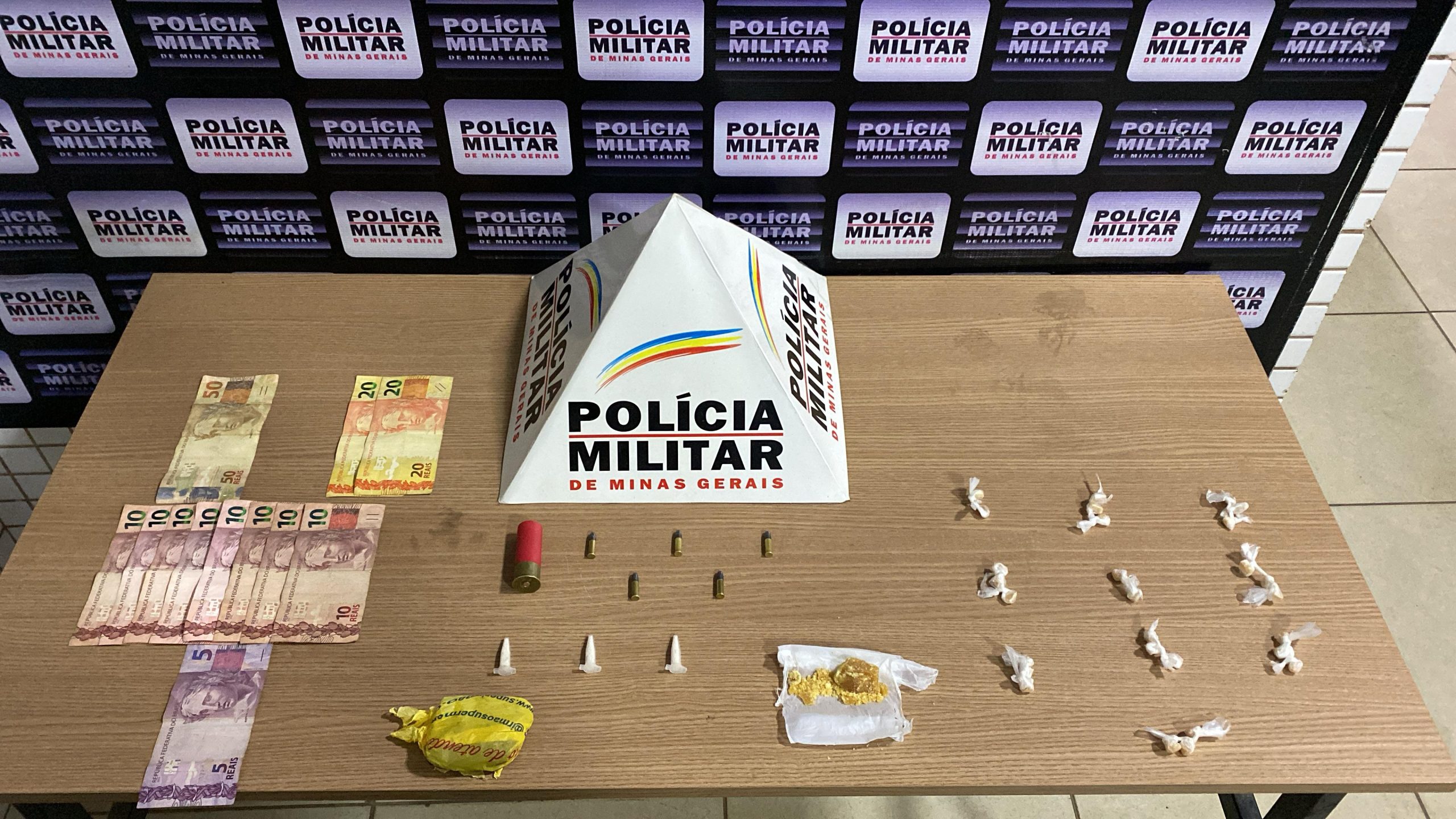 De acordo com informações do 62º Batalhão da Polícia Militar de Minas Gerais, a prisão ocorreu após a equipe abordar o suspeito, que demonstrou nervosismo ao perceber a aproximação da viatura. Durante a busca pessoal, foram localizadas cinco pedras de substância semelhante ao crack, duas munições calibre .22 e R$ 175 em dinheiro.