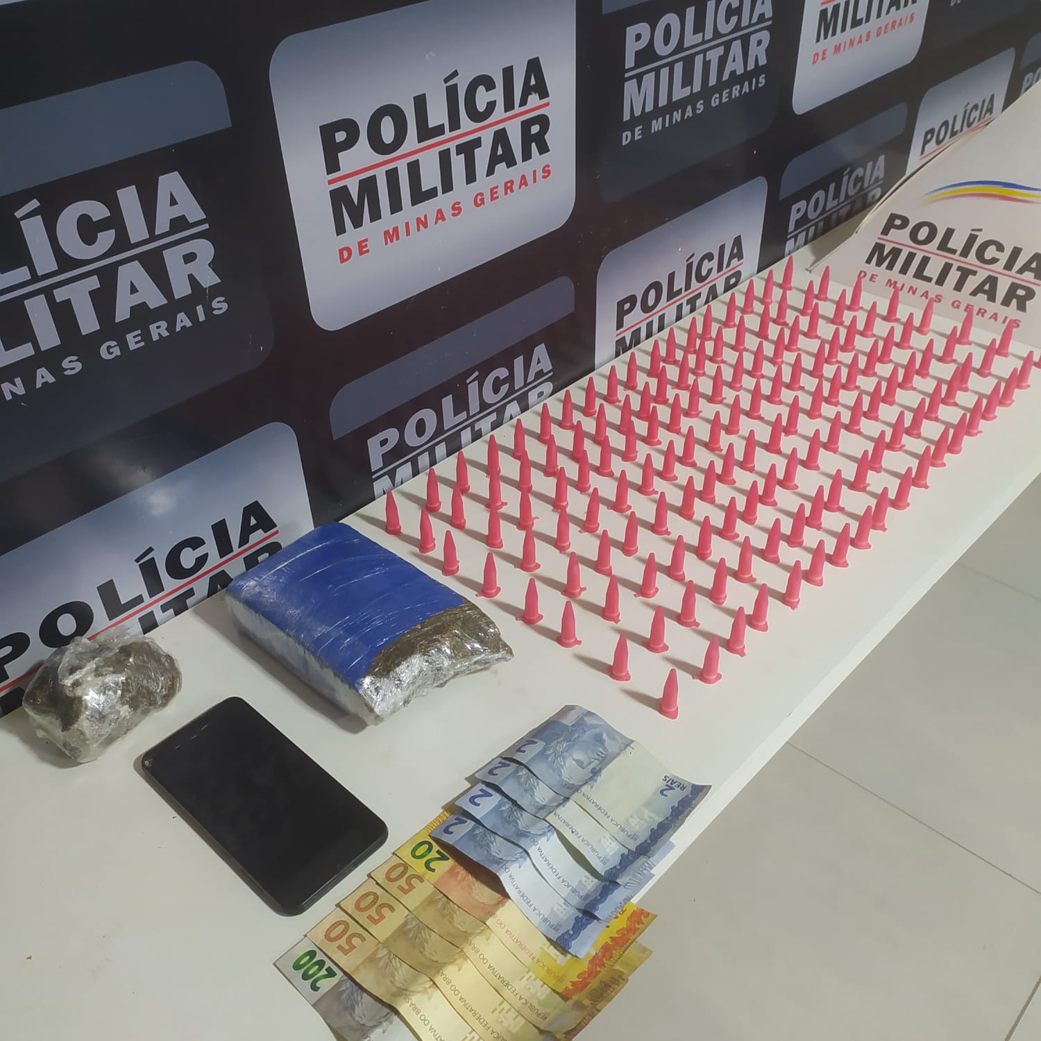 Durante a revista, os policiais localizaram 144 pinos de cocaína, além de uma barra e uma porção de maconha e um aparelho celular. O suspeito assumiu a posse do material ilícito e foi encaminhado para a Delegacia de Polícia Civil, onde foram tomadas as providências legais.